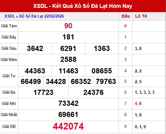 Dưới đây là phần phân tích và thống kê chi tiết XSDL, giúp người chơi có thêm cơ sở tham khảo trước khi quyết định hôm nay đánh con gì. Các con số chỉ mang tính tham khảo XS Đà Lạt ngày 1/3/2026, có thể linh hoạt thay đổi theo từng thời điểm quay thưởng.
