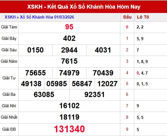 Các chuyên gia sxmb vn cho biết việc nhìn lại kết quả XS Khánh hòa trong lần mở thưởng trước sẽ giúp bạn có cái nhìn tổng quan hơn về những con số có khả năng xuất hiện trên bảng kết quả dự đoán xskh 4/3 hôm nay